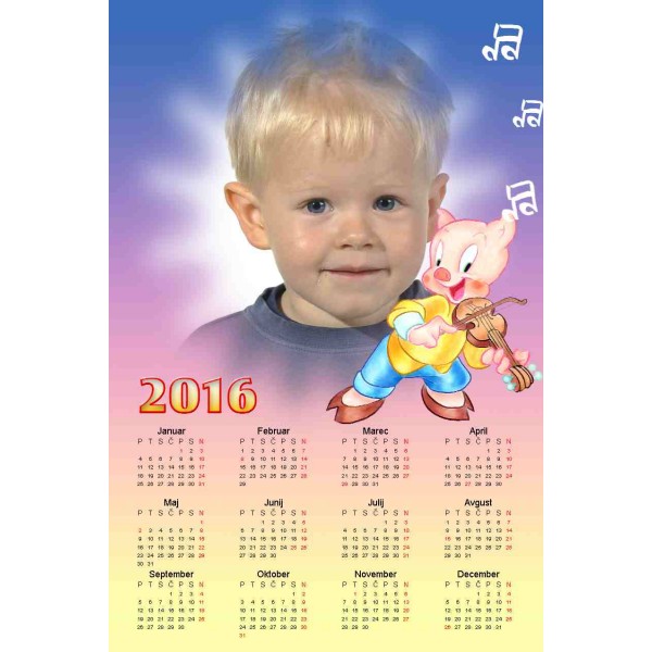 Tukaj dodate vašo fotografijo. Fotografija mora imeti dovolj ločljivosti in mora biti v formatu, ki je predviden na koledarju (npr. če je slika na koledarju pokončna, mora biti takšna tudi vaša.)